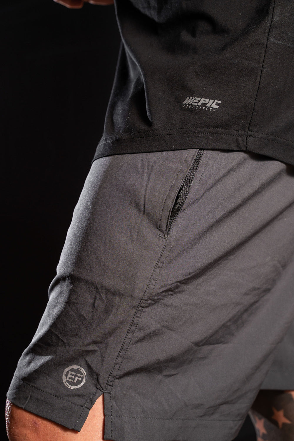 WE ARE SO EXCITED TO WELCOME OUR NEW EPIC FIT MENS ACTIVEWEAR SHORTS YOU ARE GOING TO ABSOLUTELY LOVE THIS STYLE WE HAVE MADE THESE WITH AN AMAZING ACTIVE WEAR MATERIAL THAT IS A LIGHT FIT MATERIAL WITH A LITTLE STRETCH TO WORKOUT WE ADDED OUR SIDE POCKETS ONE FRONT POCKET HAS A ZIPPER SO YOU CAN MAKE SURE THINGS DONT FALL OUT PLUS WE ADDED A BACK POCKET WITH A ZIPPER SO YOU CAN ADD YOUR WALLETS OR WHATEVER YOU LIKE THIS LENGTH IS PERFECT GOES RIGHT ABOVE THE KNEES WITH OUR LOGO ON THE BOTTOM EDGE WE HAVE DESIGNED THESE FOR YOU MEN TO WEAR NOT ONLY TO THE GYM BUT TO ALSO WEAR AS A DAILY EVERY DAY SHORT ALSO MADE IN THREE DIFFERENT COLORS DONT SLEEP ON THESE CAUSE THEY WILL SELL OUT FAST